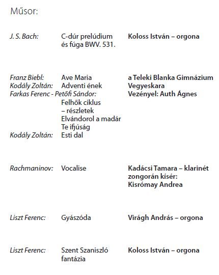 Hangversennyel emlékeznek barátai Somorjai Ferenc zenetanárra Szent Ferenc ünnepén december 3-án, csütörtökön a Barátok templomában. Liszt, Kodály, Rachmaninov és Bach műveit a Teleki Blanka Gimnázium vegyeskara Auth Ágnes vezetésével, Koloss István, Kadácsi Tamara, Kisrómay Andrea és Virágh András adják elő.