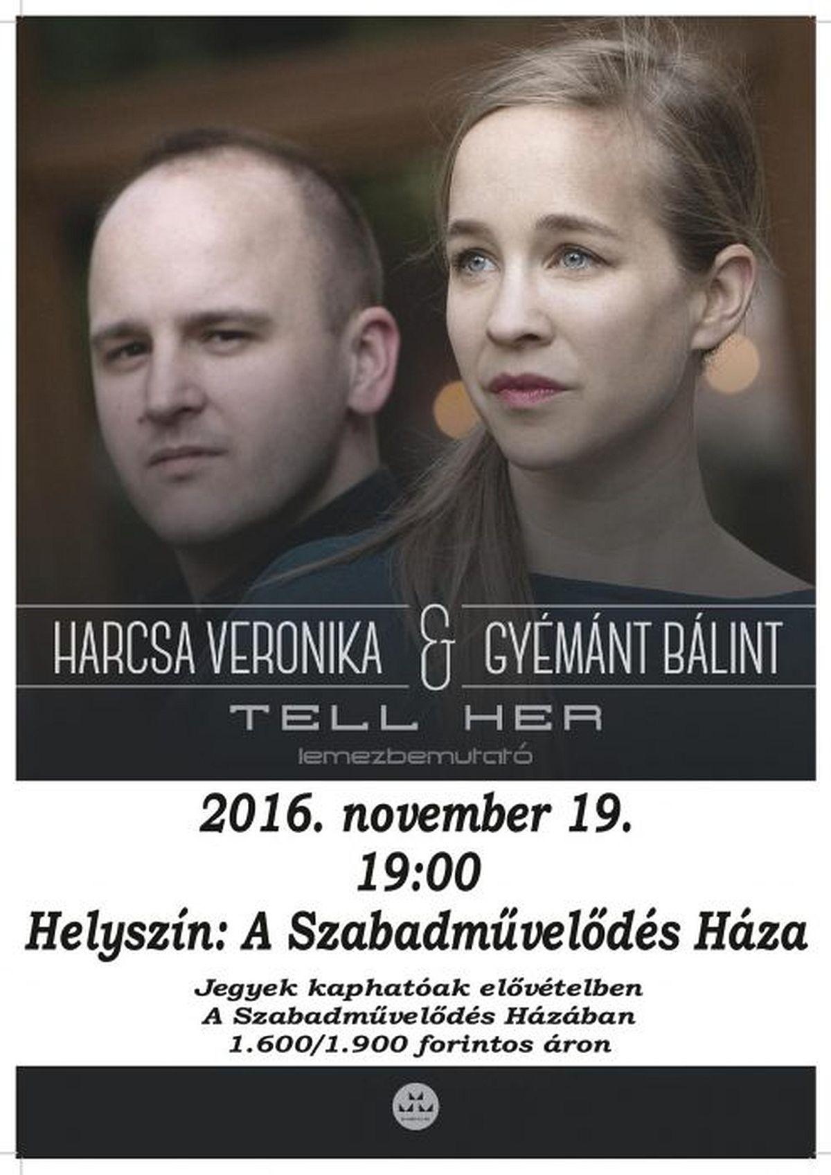 Harcsa Veronika énekes és Gyémánt Bálint gitáros a Liszt Ferenc Zeneművészeti Egyetem jazz tanszékén voltak osztálytársak. Egyikük Brüsszelben, másikuk Oslóban tanult tovább, mégis egymás legfontosabb zenésztársai lettek. Együttműködésükhöz eddig hat lemez, valamint számtalan külföldi és hazai koncert kötődik. Első duólemezük, a Nyugat-Európában is nagy sikert aratott Lifelover után december 7-én, a Zeneakadémián mutatják be új, Tell Her című albumukat. Az új lemez anyagát Harcsa Veronika zenei ötletei és szövegei nyomán közösen dolgozták ki, majd a végső hangzás megalkotásában a New York-i születésű producer, Jeremy Friedman volt a kreatív munkatársuk.