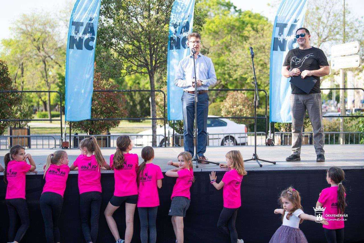 A táncosokat a Magyar Király előtti téren dr. Cser-Palkovics András polgármester köszöntötte. Elmondta, hogy a tánckultúra széles közösségeket mozgat meg mind világszerte, mind Székesfehérváron. Örömét fejezte ki, hogy sok mosolygós arcot látni a téren, a város pedig igazi tánclázban ég, nemcsak a délutáni bemutatók okán, hanem amiatt is, hogy miután tegnap az Alba Regia Táncegyüttes 75 évének legjobb koreográfiáit láthatta, ma este pedig a Székesfehérvári Balett Színház produkcióját élvezheti a közönség.
