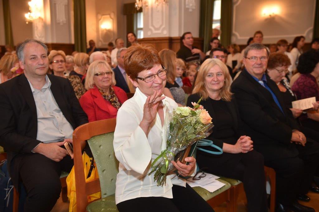 Szőkéné Fábián Irént Filkornné Sándor Rózsa méltatta. Elmondta, hogy az óvónő 1982 óta dolgozik a Sziget Utcai Óvodában, ahol munkáját mindig lelkesen, nagy odaadással végezte és végzi. A gyermekek zenei nevelésében élen járt, 1982-től az Ikarus Női Kar tagja, majd alapító tagja az Ikarus Vegyes Karnak, 1999-ig az egyesített Alba Regia Vegyes Karban énekelt. Tudását a saját óvodai csoportján kívül nemcsak óvodájában, hanem Székesfehérvár városában is kamatoztatta, kamatoztatja. 1996-tól 2009-ig városi „Játék és tánc” munkaközösség vezetője volt. Foglalkozásain szinte a város minden óvodájából, valamint a környező települések óvodáiból is részt vettek. Jelenleg a Művészetre Nevelés munkaközösség aktív tagja. Az óvodai zenei nevelés terén az értékmegőrzést, hagyományápolást tekinti fő feladatának. A játékos tánc mozgásanyagát, a játékokat, táncokat minden esetben a ritmusképzés, a metrika, az ütem, a ritmus- és a tempóérzék fejlesztésének szolgálatába állítja. Munkájára jellemző Kodály Zoltán alábbi idézete, amit az óvodai zenei nevelés terén valósít meg: „Minden gyermeknek joga, hogy az iskola kezébe adja azt a kis kulcsot, amellyel, ha ő is akarja, bejut a zene csodakertjébe, s azzal egész élete értékét megsokszorozza.”