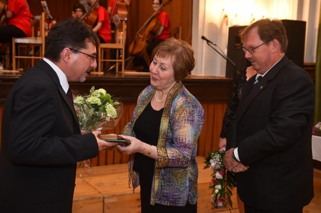 Horányi Ottilia karnagyot egyik volt tanítványa, Kneifel Imre karnagy köszöntötte. Oti néniről úgy beszélt, mint egy olyan pedagógusról, aki egész életében tanított, s tanít a mai napig is. Egyike azon tanároknak, akik minden cselekedetükkel, minden mozzanatukkal tanítanak, példát mutatnak. Majd saját élményeit megosztva a hallgatósággal arról beszélt, hogy a tanárnőnek köszönhetően sok fehérvári – köztük többen a zenei pályát választó egykori diák - rengeteg alkotást, kari művet ismerhetett meg. Tanítványainak azt adta át, hogy zenével élni sokkal szebb és jobb, mint nélküle.