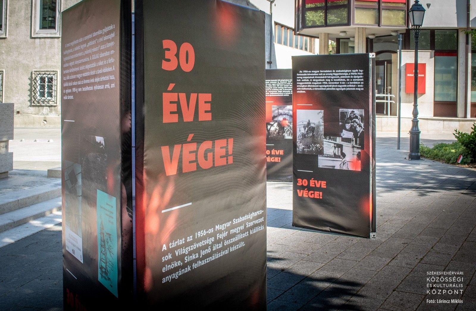 Az Országzászló téren látható kiállítás 1944-től 1991-ig mutatja be a szovjet megszállás időszakát, az azzal összefüggő történéseket. A képek olyan témákat is érintenek, mint a „malenkij robot” vagy a GULAG, felidézik az 1956-os forradalom időszakát, bemutatják a végleges kivonulást. A Székesfehérvári Közösségi és Kulturális Központ által szervezett utcakiállítás Sinka Jenő, az 1956-os Magyar Szabadságharcosok Világszövetségének Fejér megyei elnöke által összeállított tárlat alapján készült, amelyet korábban több alkalommal is láthattak már a székesfehérváriak. A kiállítást a 30. évfordulón utcakiállítás formájában valósította meg az intézmény, hogy minél többen – a védettségi igazolvánnyal nem rendelkezők is – láthassák.