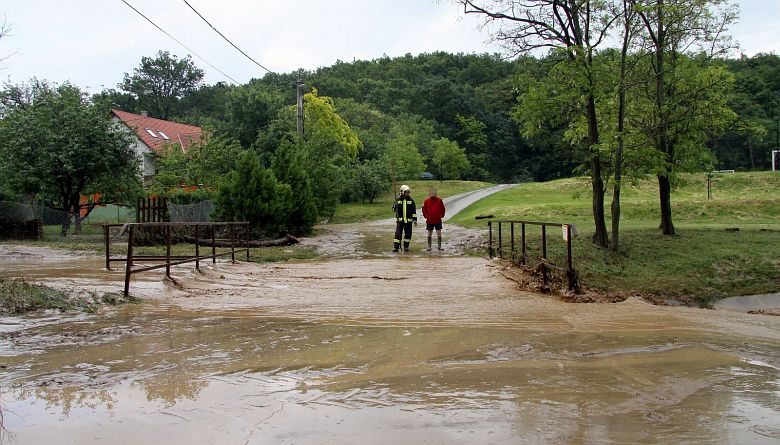 A felderítés során kiderült, hogy az Ady Endre utca végénél az egyébként alig egy méter széles csermely 30-40 méter szélesre duzzadt, átbukott egy betonhíd felett és öt lakóházat körbevett. Az épületekben nem tört be a víz, embereket nem veszélyeztetett, a kertekben viszont több tíz centiméter iszapot hagyott maga után. A sodrás erejét jól mutatja, hogy elsodort egy lakókocsit és egy fémből épített gyalogos hidat is. A lakókocsit szerencsére csak pár méteren keresztül vitte a víz, mivel különböző tereptárgyakban elakadt.