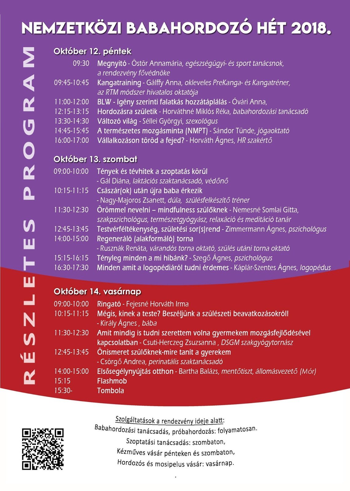 A rendezvényhez kapcsolódóan pénteken és szombaton kézműves vásárral, vasárnap pedig hordozós és mosipelusvásárral várják az érdeklődőket. A programsorozatot vasárnap délután flashmob és tombola zárja.