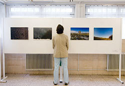 A biennálé képeit összesen hét helyre osztották el, így a város minden pontján található egy- egy kiállítás. A fotók népszerűsítése érdekében a képeket nem csak galériákban helyezték el, hanem olyan helyekre is kerültek alkotások, ahol olyan emberek is láthatják, akik nem mennének ezért be egy kiállítóterembe. Így kerültek alkotások a főiskola aulájába, illetve két népszerű szórakozó helyre is. A programban két fehérvári alkotó neve volt olvasható, Kovács Milán és Garami Richárd neveztek a pályázatra, de Garami alkotó társa volt Varga Gábor Farkas is. Kovács Milán (a képen látható, alkotásaival) fiatal fotós a tőle megszokott minimalista stílusban készült képeit állította ki "novel tájképek" címmel a Szivacs Galériában. Az alkotó célja a fotókkal, hogy bemutasson egy az átlagostól eltérő látásmódot, hogy egy havas faház deszkái is lehetnek érdekesek, elgondolkodtatóak. Az alkotó megmutatta azt is, hogy a témának a képen nem kell feltétlenül a középpontban lennie, lehet a kép egy apró részlete is az ember az egyik sarokban elhelyezve. Garami Richárd és Varga Gábor Farkas munkája a Bőrgyár Kulturális Egyesület által rendezett Fűnyíró fesztiválon készültek, ahol a két alkotó a fűbe egy babérkoszorút nyírt és a munka dokumentációjából raktak össze egy mesediát. A vetítőt mindenkinek magának kellett végigtekernie, ami alatt megismerhette a két tudós életét, illetve a fűnyírás folyamatait. A diafilm eredeti ötlet és hordozza az alkotók egyéni stílusát. A biennálé képei május 26-ig tekinthetők meg és több kísérőprogram is lesz ez idő alatt.