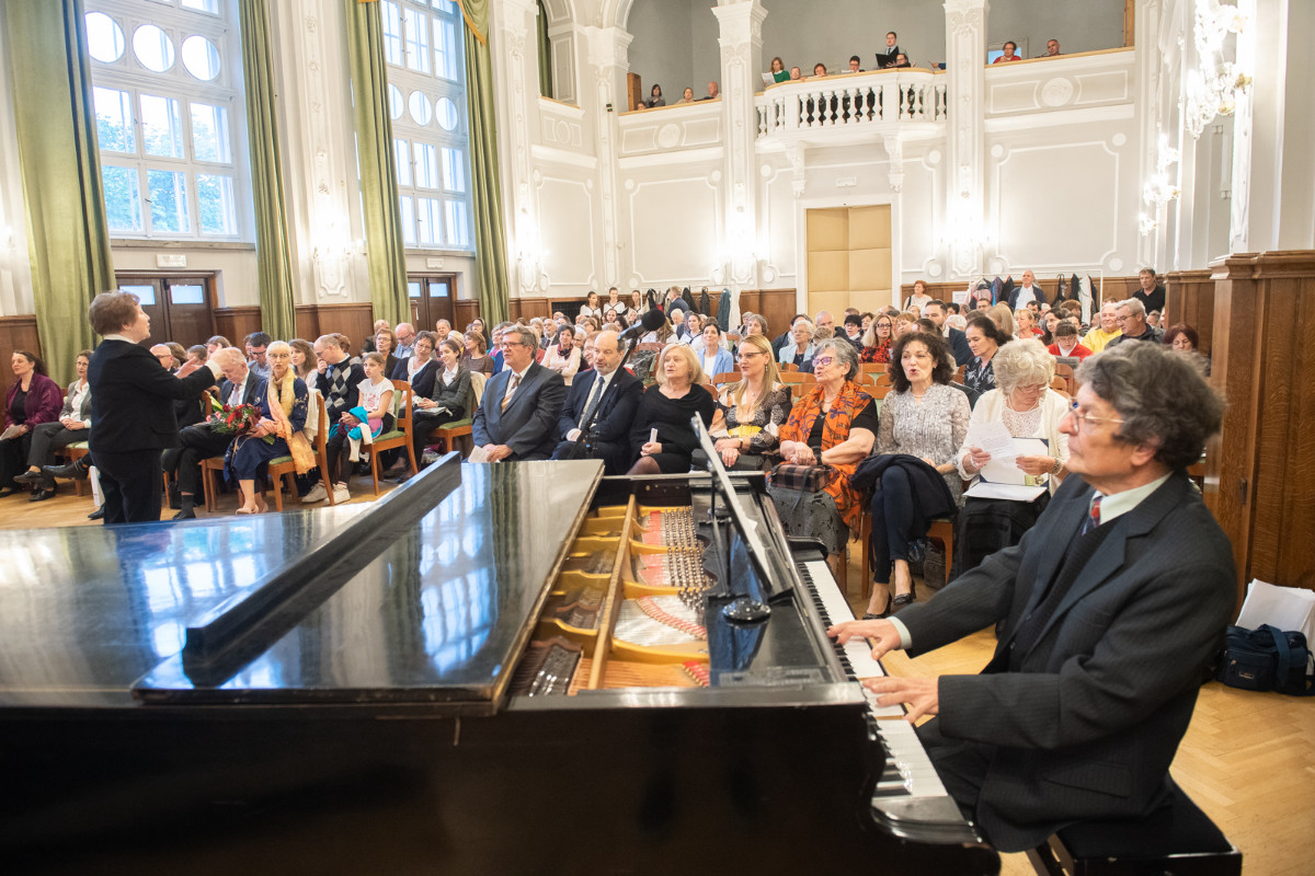 Székesfehérvár Önkormányzata képviseletében Lehrner Zsolt alpolgármester köszöntötte a résztvevőket. Mint mondta, minden városban megvannak azok az elődök, akikre büszkék lehetünk. Székesfehérvár zenei élete számára ilyen kincs Mihályi Gyuláné Eszti néni, aki a kodályi gondolatok mentén haladva szerettette meg rengeteg fiatallal és felnőttel a zenélés örömét, elindítva városunk első ének-zenei általános iskoláját is. „Nagyon fontos missziót teljesít az Alapítvány, amelyet Mihályi Gyuláné két gyermeke – lánya dr. Rosner Gyuláné Marianna és fia dr. Mihályi Gyula – hozott létre. Őrzik a lángot, segítik továbbvinni az Eszti néni által is képviselt értékeket, átadva a zene szeretetét és közösségteremtő, illetve -megtartó erejét.” – hangsúlyozta az alpolgármester, hálát adva az ünnepi hangversenyért és a város gazdag zenei, kulturális életéért.