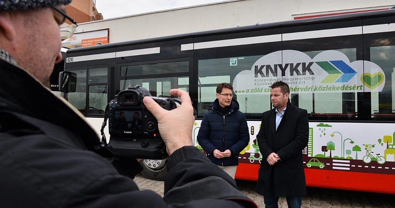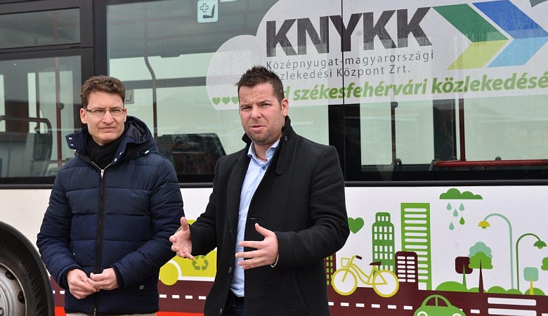 Az újonnan beszerzett buszokról Székesfehérvár polgármestere Cser-Palkovics András és Németh Tamás, KNYKK Zrt. vezérigazgatója közösen tartott sajtótájékoztatót.