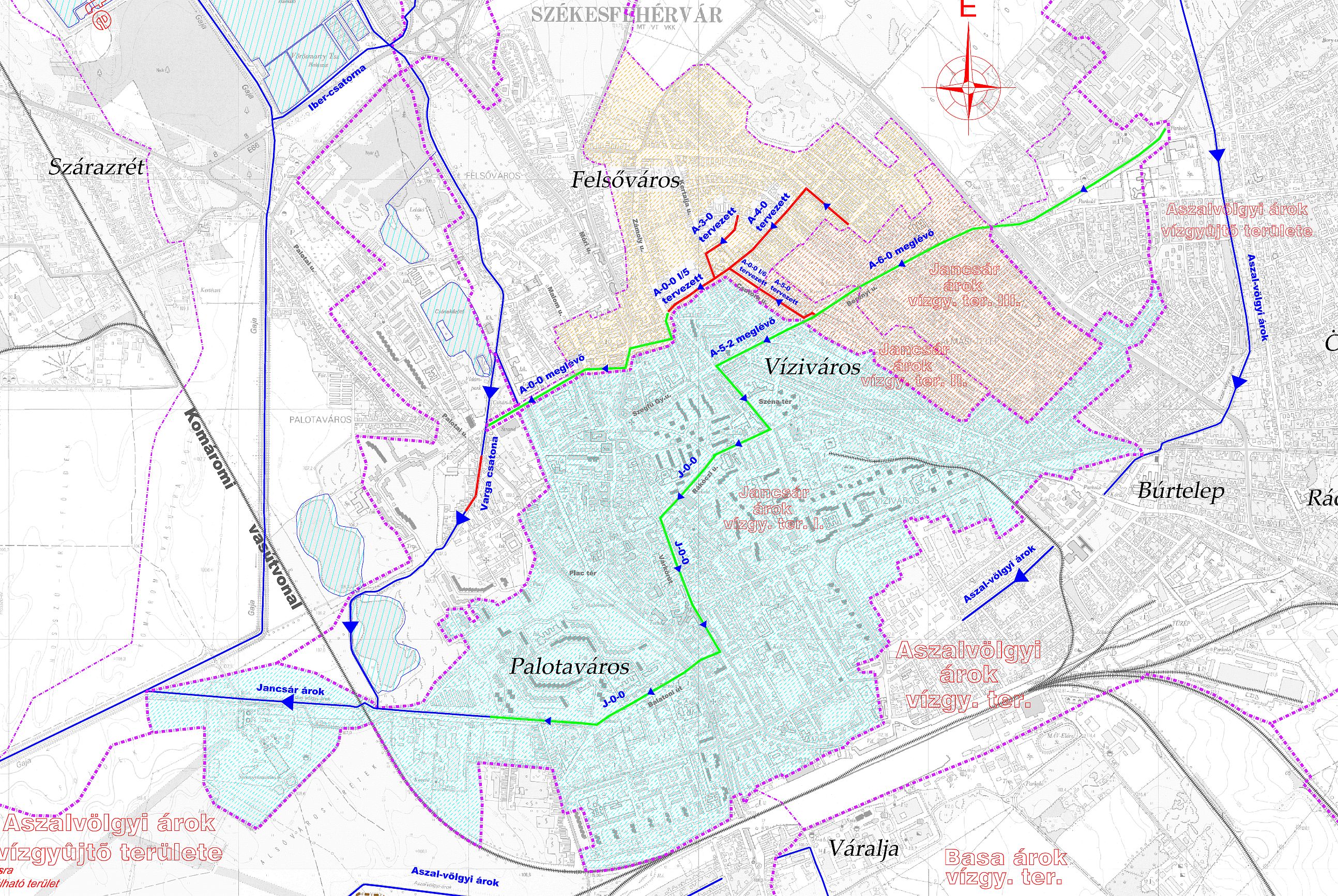 A Zámoly utcai körforgalom alatt kezdődő hatalmas vezeték (A-0-0) a Mészöly Géza utca alatt haladva a Varga csatornába juttatja az esővizet, mely szintén a Gajába folyik. Ezt a vezetéket kell összekötni a Berényi úti A-6-0 csatornával.