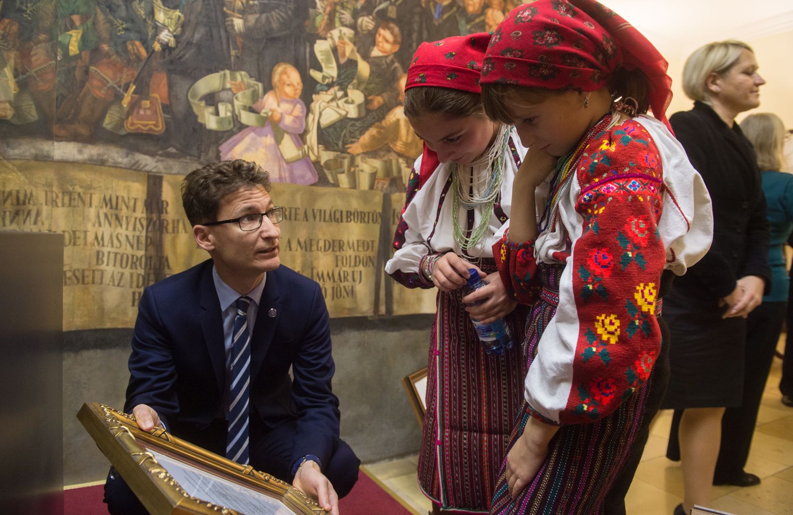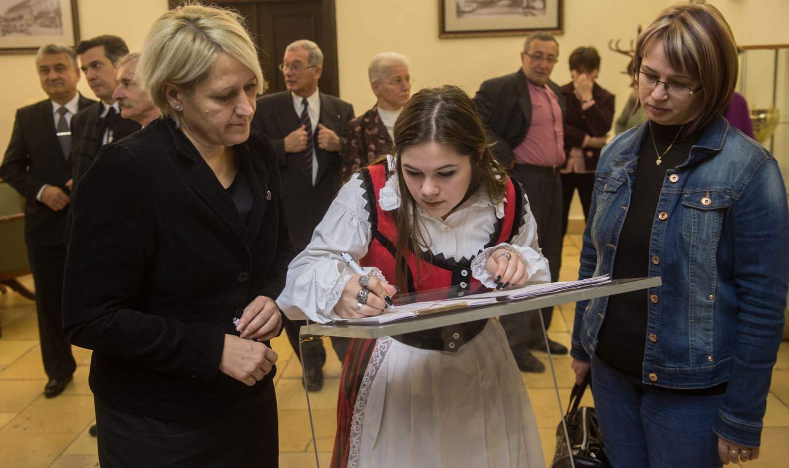 A vendégeket Deák Lajosné, a határon túli magyarokkal kapcsolatos feladatok tanácsnoka is köszöntötte, aki elmondta, hogy éppen tegnap érkeztek haza Csángóföldről, ahova jótékonysági csomagokat vittek gyerekeknek. Megköszönte a családoknak, akik a határon túli vendégek elszállásolásában segítenek, és köszönetet mondott a Jótékonysági Esten fellépő gyerekeknek, majd jó felkészülést és jó szórakozást kívánt. A vendégek átvették a város szimbolikus ajándékait, majd Kiss Erika idegenvezető bemutatta nekik a Városháza történelmi- kulturális értékeit.