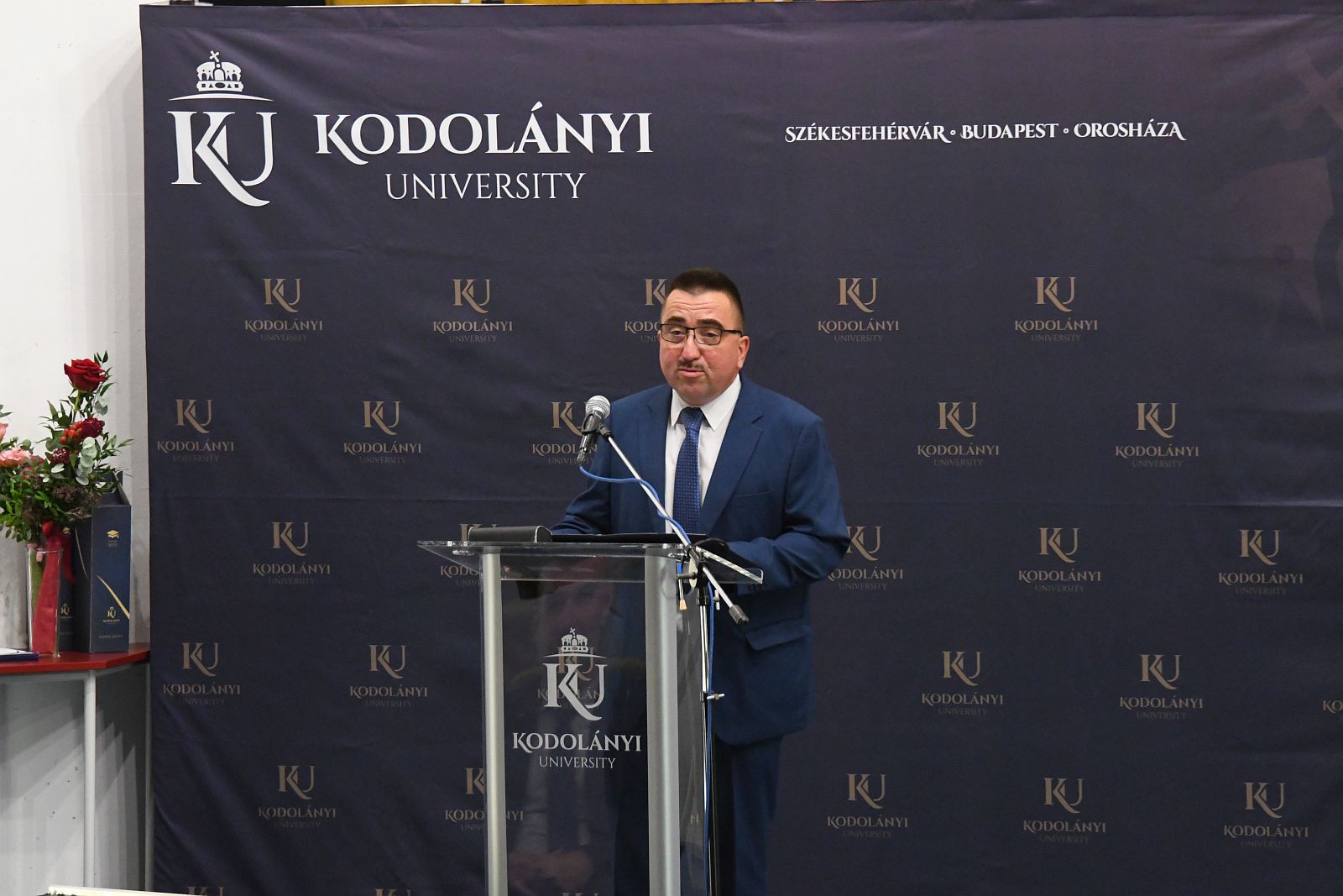 Székesfehérvár Önkormányzata nevében Mészáros Attila alpolgármester köszöntötte az értekezlet résztvevőit. „Látható eredményei vannak annak a munkának, melyet az új egyetemi struktúra, az új tulajdonosi kör néhány hónapja megkezdett. Rendezték az Egyetem helyzetét, Magyarország Kormányával sikerült megállapodást kötni, melynek köszönhetően újra vannak állami férőhelyek, és sikerült a létszámokat folyamatosan bővíteni. Hálásan köszönöm mindenkinek, aki ebben részt vett, hiszen ahogy a múltban, úgy a jelenben és a jövőben is: Székesfehérvár számára kiemelten fontos az Egyetem jelentléte, folyamatos bővülése és fejlődése.” – mondta. Az alpolgármester arról is szólt, hogy a Kodolányi Gimnázium évről évre egyre több fiatalt vonz. Idén januárban átadták az intézménynek az egykori Ybl Miklós Általános Iskola felújított épületét, és várhatóan néhány héten belül befejeződik a gimnázium főépületének teljes rekonstrukciója is.