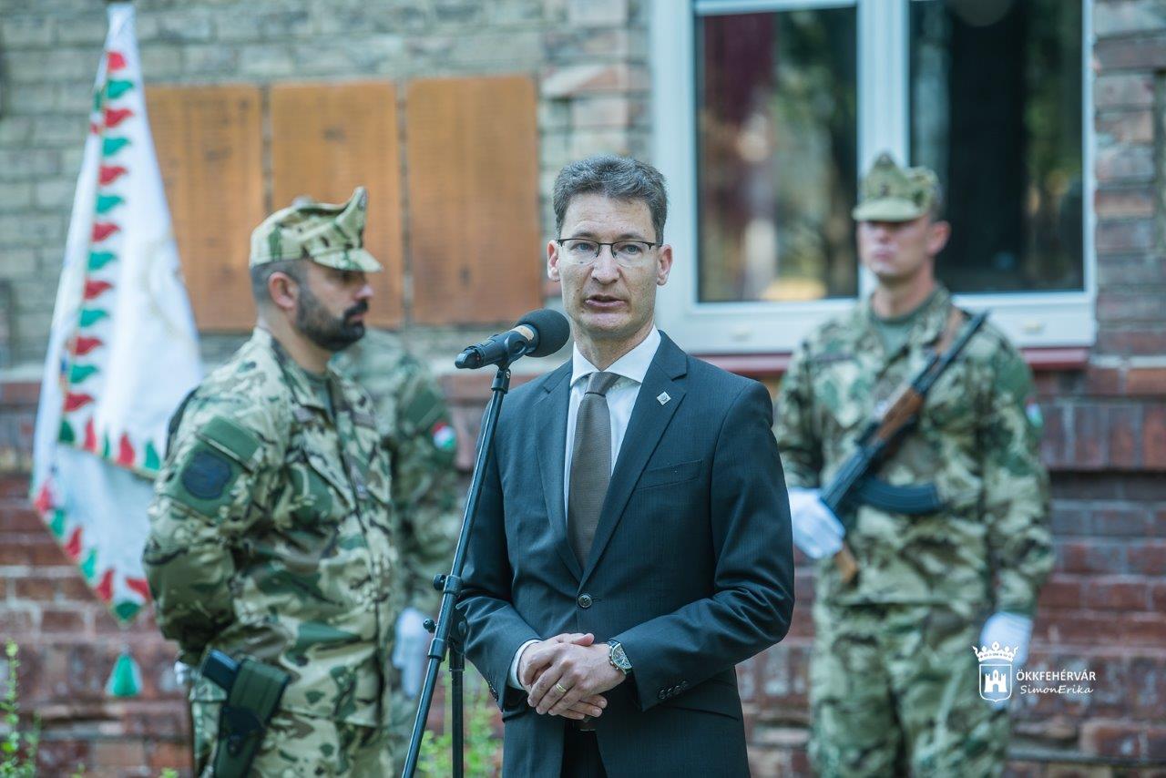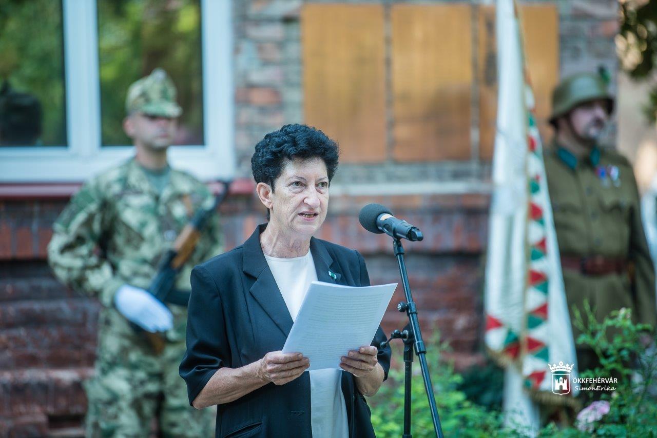 A hősi áldozatoknak emléket állító alkalmon dr. Cser-Palkovics András mondott ünnepi beszédet: „Amikor idejövünk minden esztendőben, hogy a Szent Istvánról 1930-ban elnevezett ezredet ünnepeljük, azt azért tesszük, hogy emlékezzünk és emlékeztessünk! Szent István ránk hagyott értékeit, intelmeit, alkotásait felvállalta az alakulat is. Tudjuk, hogy az ezred sok tekintetben a város részévé vált: nem csak mint katonai szervezet, hanem részt vett a város társadalmi és kulturális életében és mindennapi problémáinak megoldásában is. Elődeink felírták, hogy 1940-ben - bár a háború már zajlik, de - az ezred mégis a nagy havazás okozta fennakadásokat is segített kezelni itt, Székesfehérváron. Aztán a történelem vihara máshova sodorta ezt az ezredet. Tudjuk, hogy messze mentek gyermekek, unokák, férjek, apák akkor, és azt is tudjuk, hogy sajnos nagyon-nagyon kevesen térhettek haza. Ma kiemelten emlékezünk még egy személyiségre, aki hazatért, aki mindig tudatosan felvállalta és elmondta, hogy úgy érezte, azért térhetett haza, hogy családja körében, de a városa előtt is mindig megvallja azt, amit ő látott és bajtársaival együtt megélt, ő maga pedig túlélt. Mindig emlékeztetni szeretett volna bennünket mindazokra, akik ezt nem élték túl, akik nem jöhettek haza. Nem elfelejtve azt, hogy ez nem egy ember személyes tragédiája, hanem egy katona tekintetében mindig jelenti az ő hozzátartozóinak, egy nemzetnek, egy hazának a tragédiáját is. Ez az a tanulság, amelyet Smohay Ferenc mindig hozott, és emlékezetét a lelkünkre kötötte. Augusztus 15-én az ő bajtársaira és hőstetteire emlékezünk, és reméljük, hogy ma jó szemmel tekint le ránk odafentről.” – fogalmazott a polgármester.
