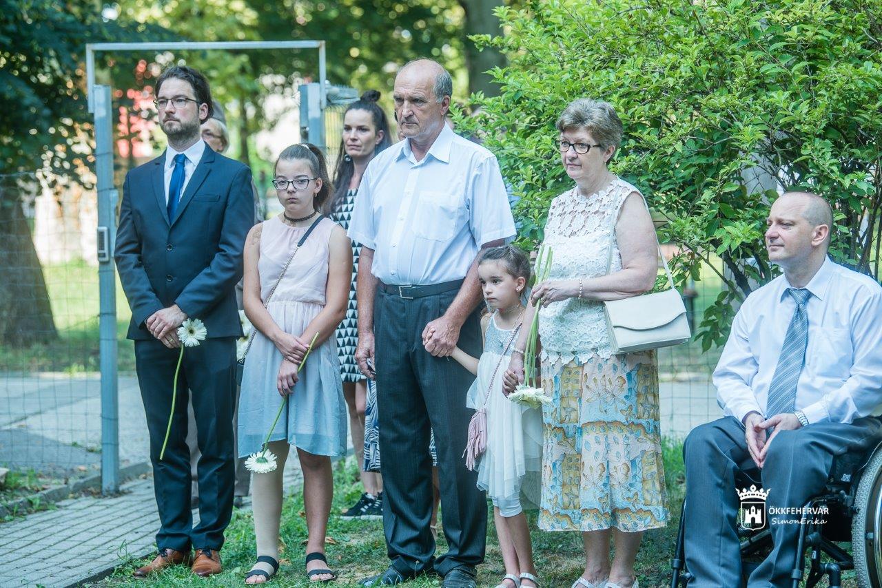 Az emléktáblánál az Önkormányzat nevében dr. Cser-Palkovics András polgármester és Vargha Tamás országgyűlési képviselő, valamint Dancs Norbert, a Székesfehérvári Járási Hivatal vezetője helyezett el koszorút. Fejet hajtott továbbá Dr. Ruszin-Szendi Romulusz vezérőrnagy, a Magyar Honvédség parancsnoka és Somogyi Zoltán dandártábrnok, a Közép-európai Többnemzeti Hadosztály-parancsnokság törzsfőnöke, valamint az Önkormányzat, a katonai és a rendvédelmi szervek képviselői, a HOHE képviselői, a résztvevő hagyományőrzők és az iskola vezetősége. A megemlékezésen a Székesfehérvár Helyőrségi Zenekar a Seregi-, a Doroszlai- és a Helényi-indulóval működött közre.