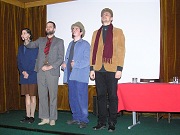 A délelőtti zsúfolt és pótszékes diákelőadások után meglepő volt, hogy az esti előadásra milyen kevés érdeklődő volt kíváncsi. Az Eleuszisz Színház társulata alaposan kitett magáért: már az első percektől a nézők elé varázsolták az ötvenes évek kultúrházi hangulatát, és ezt meg is tartották az előadás végéig: a produkció humoros, irónikus formában mutatta meg az 50-es évek ideológiai „harcát”, amikor még a népművelők diavetítőikkel felvértezve, a falvakat járva hirdették a Népköztársaság győzelmét. A délelőtti diákközönség vette a lapot, és a társulattal énekelte a korabeli tömegrendezvények nélkülözhetetlen kellékét, az Internacionálét.