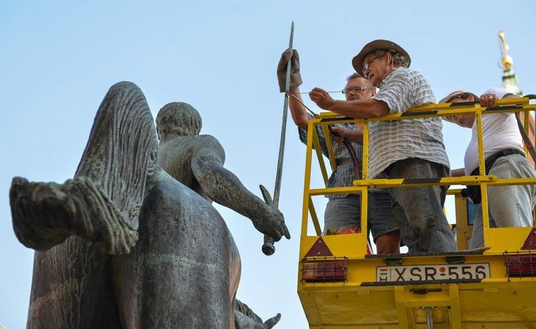 Mától ismét teljes Pátzay Pál alkotása, a Városház téren álló lovasszobor. A huszár megrongált kardját Kocsis Balázs szobrász, restaurátor állította helyre.