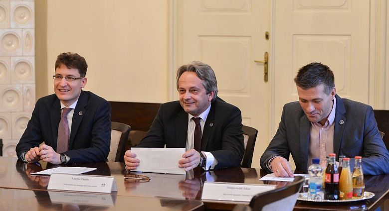 A nyertes pályázatról Cser-Palkovics András polgármester, Vargha Tamás országgyűlési képviselő és Steigerwald Tibor a Depónia Kft ügyvezető igazgatója közösen tartott sajtótájékoztatót a Városházán.