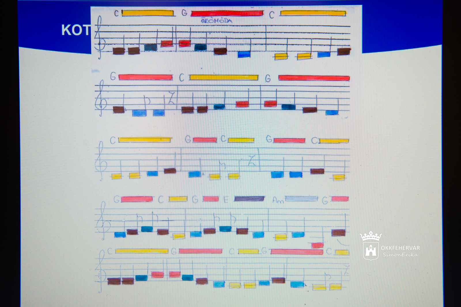 Az első előadásban Kováriné Bujdosó Lilla, az Arany János Iskola gyógypedagógusa a színkottás zenélés módszeréről tartott képes-zenés prezentációt.