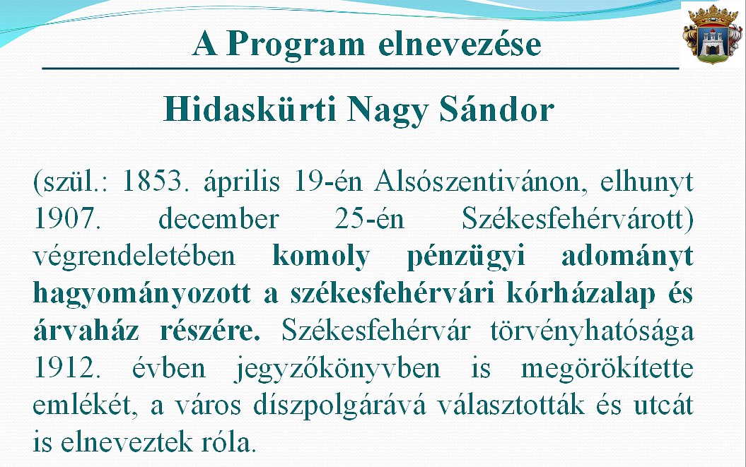 LETÖLTHETŐ prezentáció a Hidaskürti Nagy Sándor Városi Idősotthoni Programról (.ppt, 13MB)