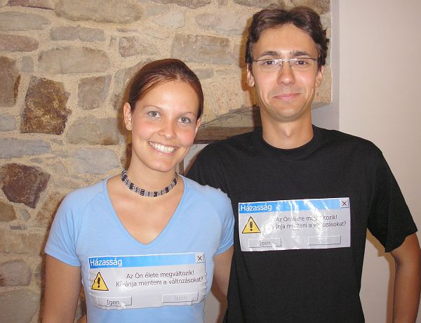 Nagy Tímea és Zimmermann Zoltán Székesfehérvár Álompárja elárulta, hogy nemrégiben érkeztek haza a nyaralásból és bár igen sok programjuk volt az elmúlt napokban, azért tartalékoltak még "szabit" a jövő hétre is. A hétvégén tartották a lány- és legénybúcsút is, erről azonban nem kérdeztünk bővebben, annyit azért -a lenti pólóra mutatva- elárult Zoltán, hogy sokminden más mellett ezt is a barátaiktól kapták. Mindketten nagyon várják már a szombatot, hiszen ez lesz életük egyik legboldogabb napja.