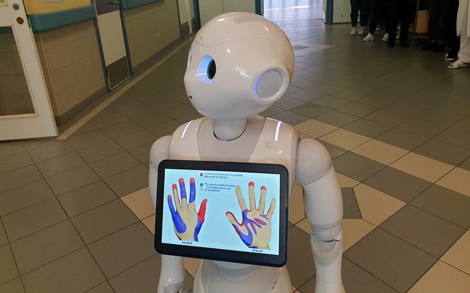 Higi robot is ellátogatott a Szent György Kórházba a kézhigiénés világnapon