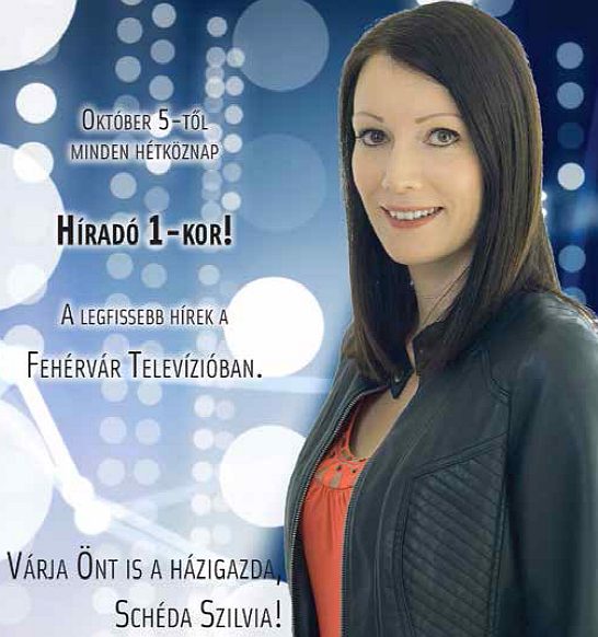 Már csak néhány nap, és október 5-től indul a Híradó 1-kor minden hétköznap. „Ez a hírcsokor nem csupán azoknak szól, akiknek lehetőségük van éppen abban az időpontban tévé elé ülni Székesfehérváron és környékén, hanem mindenkinek, aki naprakész információt napközben szeretne megtudni a városban és térségében történtekről." – mondta a Fehérvár Televízió vezetője.