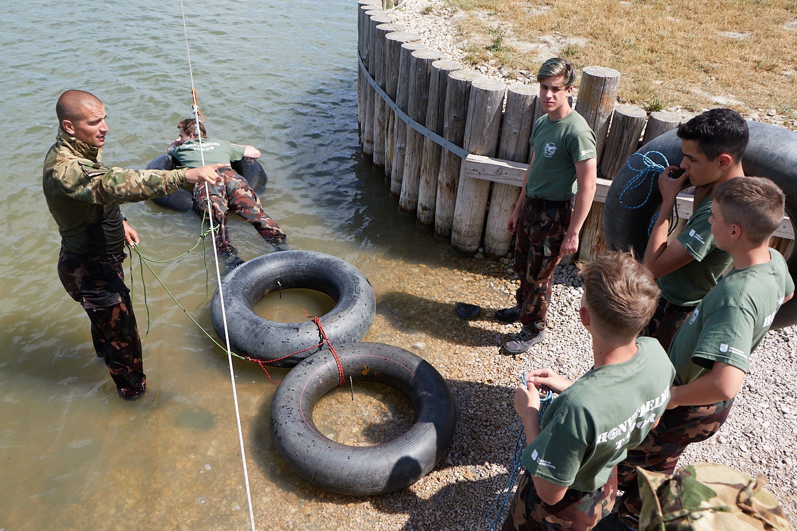 - Nagyon jól éreztem magam. Mindenki tisztelettel beszélt hozzánk. Persze ha hibáztunk, az következménnyel járt, de utólag mindegyiket megérdemeltük – utalt a nem várt fekvőtámaszokra a Győr-közeli Nyúlról érkezett Máthé Lajos Dániel. A fiatal rendészetről jelentkezett át honvédelmi fakultációra a győri Bercsényi Miklós Közlekedési és Sportiskolai Technikumban, mert sokkal jobban vonzotta a honvédelem. Számára a legtetszetősebb feladat az volt, amikor gumiabroncsokkal kötél segítségével, vízen keltek át a Velencei tó egyik öblében.