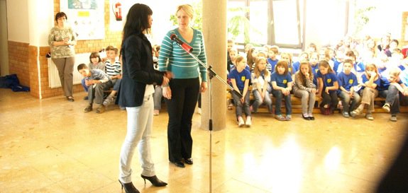 Ezt követően Östör Annamária önkormányzati képviselő, sporttanácsnok köszöntötte a szülőket és a diákokat. A program szerint nélkülözhetetlen a gyerekek-felnőttek, az iskolai közösség és a családok közötti együttműködés is - mondta Östör Annamária, aki arról is beszélt a rendezvényen, hogy az idei év legnagyobb feladata már az, hogy a programokba a szülőket is be tudták vonni. „A szülőket és a nevelők közül sokan, hetente kétszer vesznek részt tornán a nyitott tornatermek akció keretében. Agyerekek is nevelik a szülőket, sokszor ők bíztatják a szüleiket, hogy menjenek el tornára.” - tette hozzá, majd bemutatta Deák Lajosnét, Székesfehérvár újonnan megválasztott önkormányzati képviselőjét is, aki sokat segített a programok szervezésében.A Hozd a formád hét keretében május 18-án zöldségpartit rendeznek, május 19-én Kossuth-Zentai sportnap lesz, május 21-én szombaton pedig Családi Nap keretében reformételeket készítenek és osztályok közötti versenyeket rendeznek.