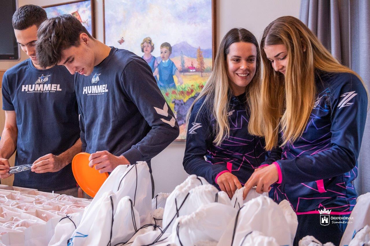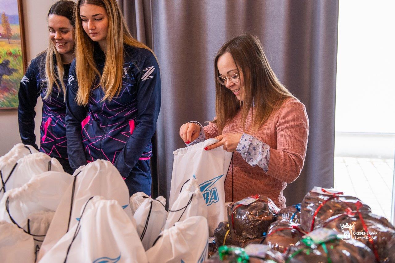 A húsvéti adományozásban szerepet vállalva a sajtótájékoztatóan részt vett az Alba Fehérvár KC kézilabdázói nevében Besszer Borbála és Boldizsár Bianka, valamint a kosarasok képviseletében Takács Martin és Balsay Ádám.