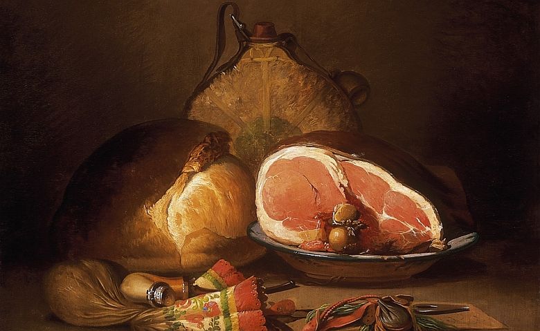 A festőket is megihleti a sonka, ahogy Újházy Ferencet, aki 1870-ben festette meg Asztali csendélet sonkával című festményét.