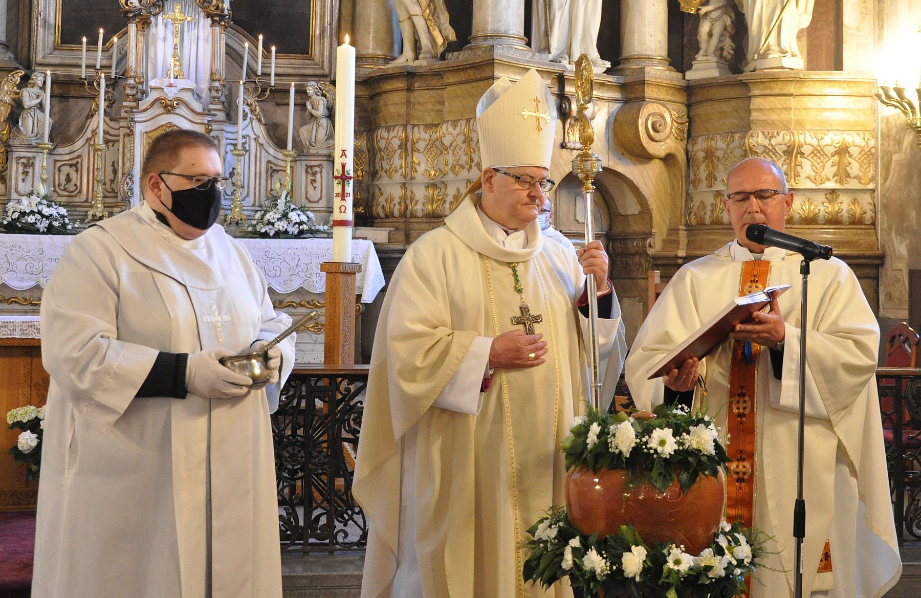 A hagyományos belvárosi körmenet ezúttal elmaradt, a feltámadás liturgiáját szentségimádás zárta, majd a hívek áldásban részesültek.