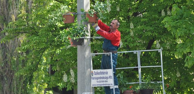 Húsvétra minden muskátli kikerült Székesfehérvár villanyoszlopaira. Idén a szokottnál kicsit korábban helyezi ki a Városgondnokság a virágokat mintegy 140 villanyoszlopra. Egy helyre a legtöbb esetben hat cserép muskátli kerül. Összesen egyébként 840 cserép piros muskátli került ki az oszlopokra. A város kertészei azért választották a pirosat, mert ez a fajta a legszebb egész nyáron, ugyanis a rózsaszín vagy a más szín kifakul a tűző napon a nyári melegben.