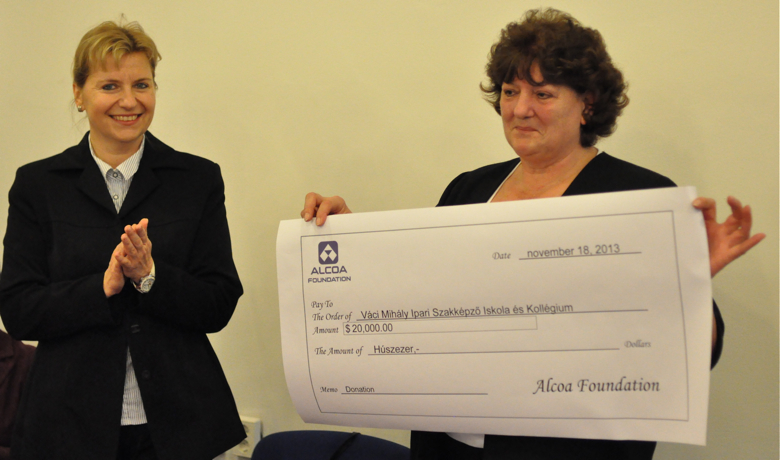 Húszezer dolláros támogatást kapott az Alcoa Alapítványtól a Váci Mihály Ipari Szakképző Iskola