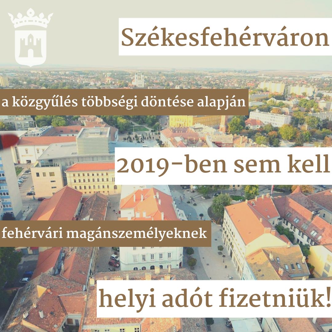 A fehérvári gazdaság teljesítménye 2018-ban rekordösszegű helyi adóbevételt tett lehetővé, melyért köszönet illeti a vállalkozásokat, vállalatokat és Fehérvár valamennyi munkavállalóját. A Közgyűlés többségi döntése alapján ezért 2019-ben sem kell a székesfehérvári magánszemélyeknek helyi adót fizetniük.