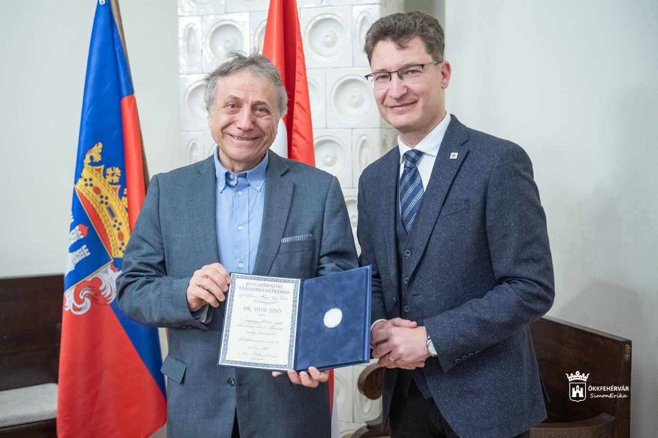 A szakembert hétfőn délután dr. Cser-Palkovics András polgármester, valamint Mészáros Attila és Lehrner Zsolt alpolgármesterek köszöntötték a Városházán. Székesfehérvár polgármestere a több mint két évtizedes szolgálat elismeréséül Polgármesteri Elismerő Emlékérmet adott át dr. Tóth Jenőnek, a város és közössége köszöneteként.