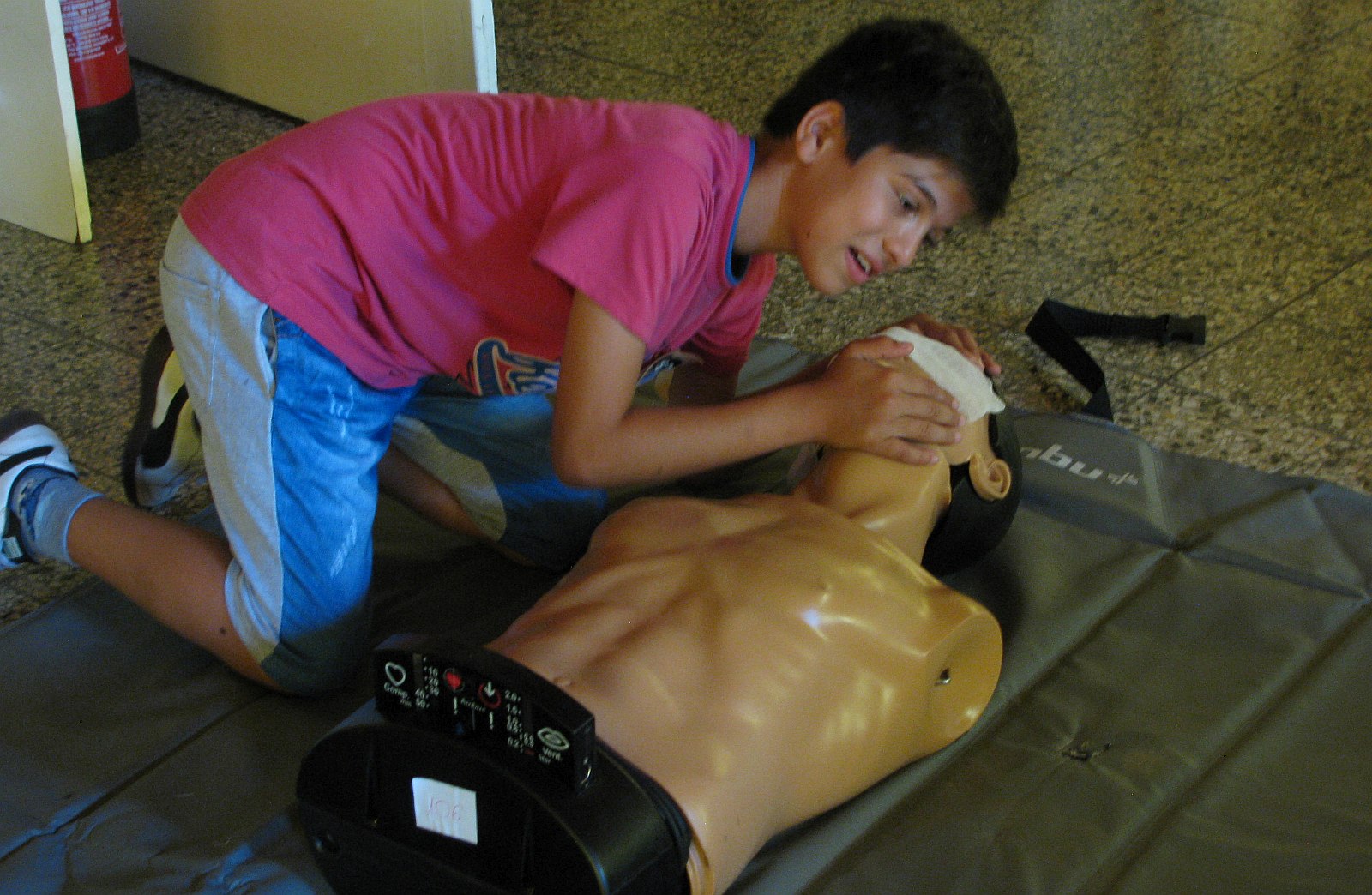 Gyarmati László mentőtiszt az újraélesztést gyakorlatban tanította a testvérpárok tagjainak.