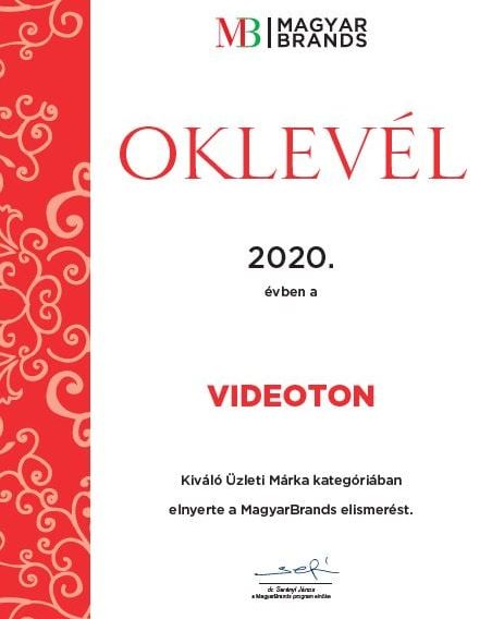 A díj egyértelmű és pozitív visszajelzést ad a VIDEOTONNAK, s egyúttal tanúsítják vállalatunk eddigi sikerességét és eredményességét - írja vállalat a közösségi oldalán.