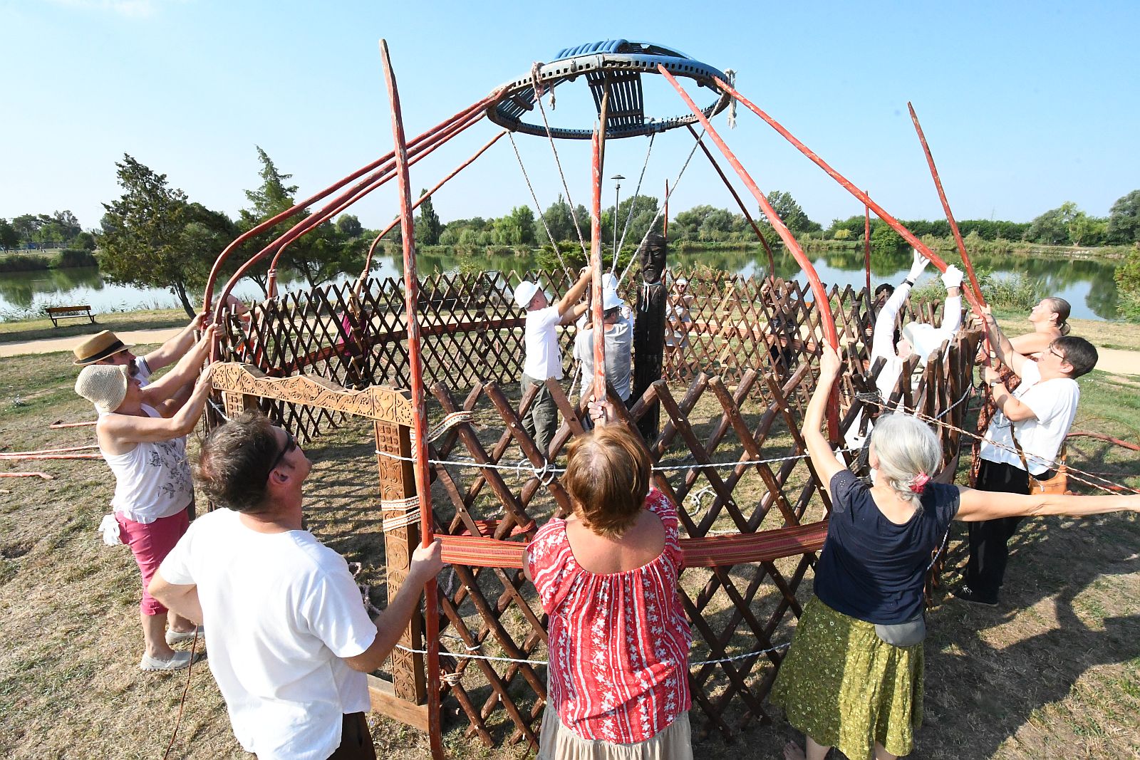 A látogatók megismerkedhettek azokkal az egyszerű kötözési módszerekkel, amivel stabilizálni lehet a jurtát – emelte ki Berta József, a Fejér Megyei Népművészeti Egyesület alapító tagja. A II. Jurta napon népművészeti vásár, kézműves bemutató. mesemondás, népi játékok és íjászkodás is volt.