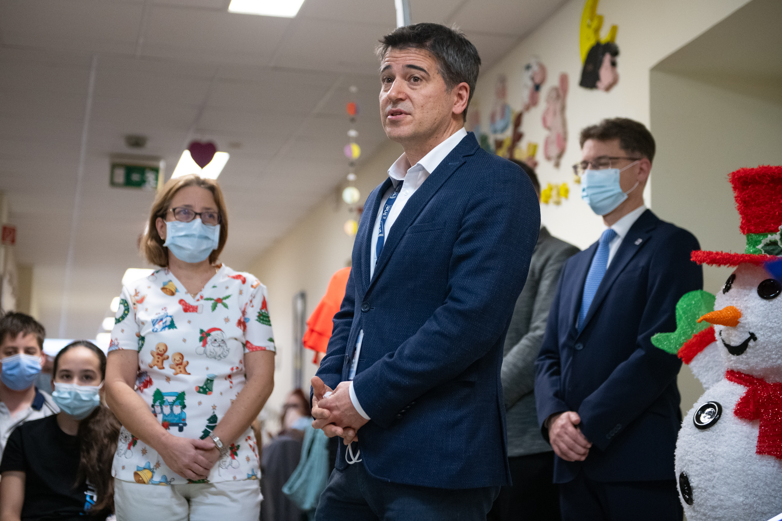 Dr. Bakos Gábor főigazgató kiemelte, nehéz dolog a karácsonyt a kórházban tölteni, különösen a gyermekeknek, de kollégái munkájának hála jó kezekben vannak. Megköszönte az Önkormányzat támogatását, ami lehetővé tette, hogy idén is ajándékokkal kedveskedjenek a kicsiknek és évről-évre hozzájárul ahhoz, hogy egyre jobb kórházzá váljanak. Végezetül betegség- és balesetmentes boldog ünnepet kívánt a jelenlévőknek.