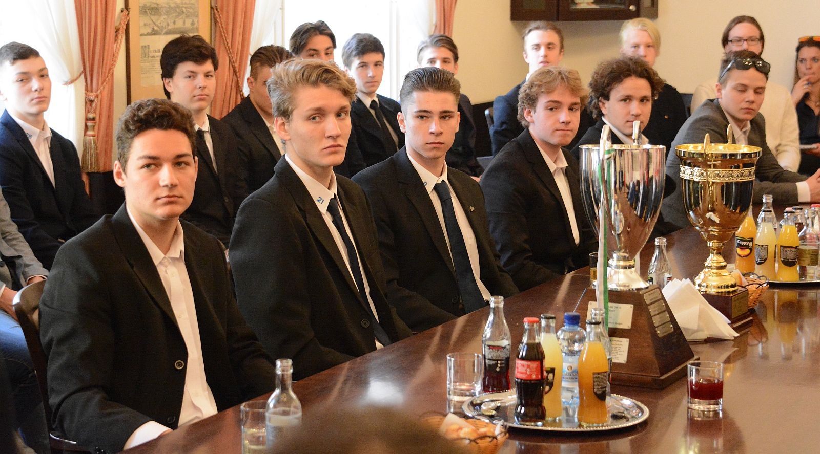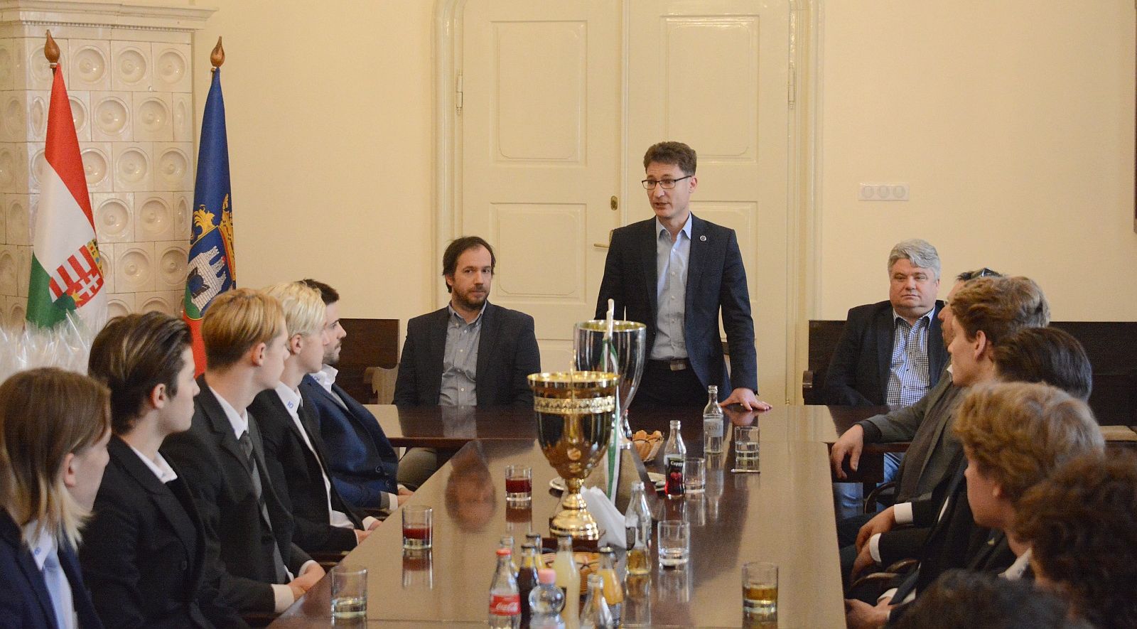 Kedden délelőtt dr. Cser-Palkovics András, Székesfehérvár polgármestere köszöntötte a magyar bajnok és az Erste Bank Juniors League-győztes Ifj. Ocskay Gábor Jégkorong Akadémia ifjúsági csapatát a Városháza kistanácstermében. „Kívánom, hogy mindenkinek eljöjjön az a pillanat az életében, amikor a Városház téren ünnepelheti a sportsikereket!” – kezdte beszédét dr. Cser-Palkovics András. „Az együttes ifjúsági csapata a mostani szezonban is egy olyan teljesítményt ért el a jégen, amely miatt érdemes a város sportszerető közössége nevében köszönetet mondani a játékosoknak, illetve a szakmai stáb tagjainak. Tudvalevő, hogy minden címet nagyon nehéz megvédeni, éppen ezért tekinthető óriási bravúrnak, hogy veretlenül sikerült elhódítani mindkét trófeát. A fiúk teljesítményéről és játékintelligenciájáról mindent elmond az a tény is, hogy nagyon sok szurkoló látogatott ki a mérkőzéseikre. A mostani egy kifejezetten erős korosztálya az Ifj. Ocskay Gábor Jégkorong Akadémiának, amely a klub jövőjét is megadja majd.” – mondta a város polgármestere, aki további sportsikereket kívánt az együttesnek.