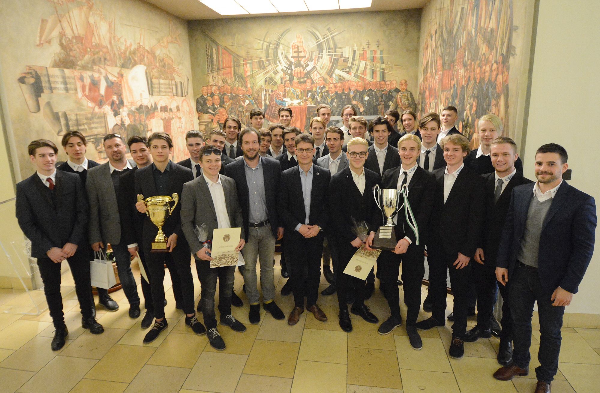 Az eseményen részt vett Gál Péter, a Fehérvár AV19 SC elnöke, Fekti István, az Ifj. Ocskay Gábor Jégkorong Akadémia sportigazgatója, Kiss Dávid, az Ifj. Ocskay Gábor Jégkorong Akadémia vezetőedzője és Sofron Attila, a gárda másodedzője. Az Akadémia nevében Fekti István köszönte meg a városnak, hogy lehetővé tette a kedd délelőtti fogadást. „Örömteli, hogy az Ifj. Ocskay Gábor Tehetséggondozó Ösztöndíjprogramunkban nevelkedő gyerekek ilyen szép sikereket értek el. Nem titok az sem, hogy az első programban résztvevő fiatalok közül lesznek olyanok, akik szerződést kapnak a felnőtt csapatnál. Ez persze azt is jelenti, hogy májustól újabb játékosok csatlakozhatnak a programhoz. Az ünneplés okozta eufória közepette „aranygenerációnak” szólítottam a csapatot. Ez nem véletlen, hiszen szeretnénk, ha a hokisaink éreznék magukon az aranyéremmel járó felelősséget is. Az célunk, hogy minél több tehetséget tudjunk adni az EBEL-csapatnak.”