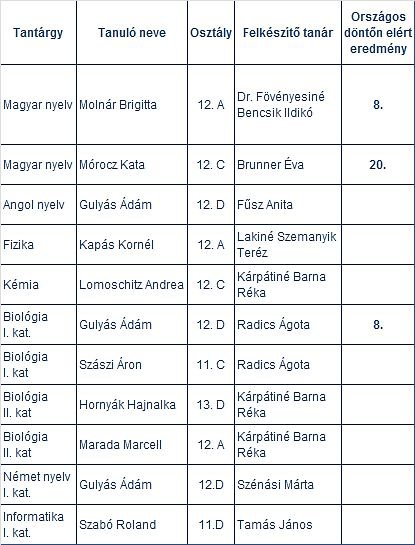 országos döntőn 7. helyezést ért el a 11. C osztály csapata: Schlett Bálint, Senkár László, Jeszenszky Dániel, Major Zsombor