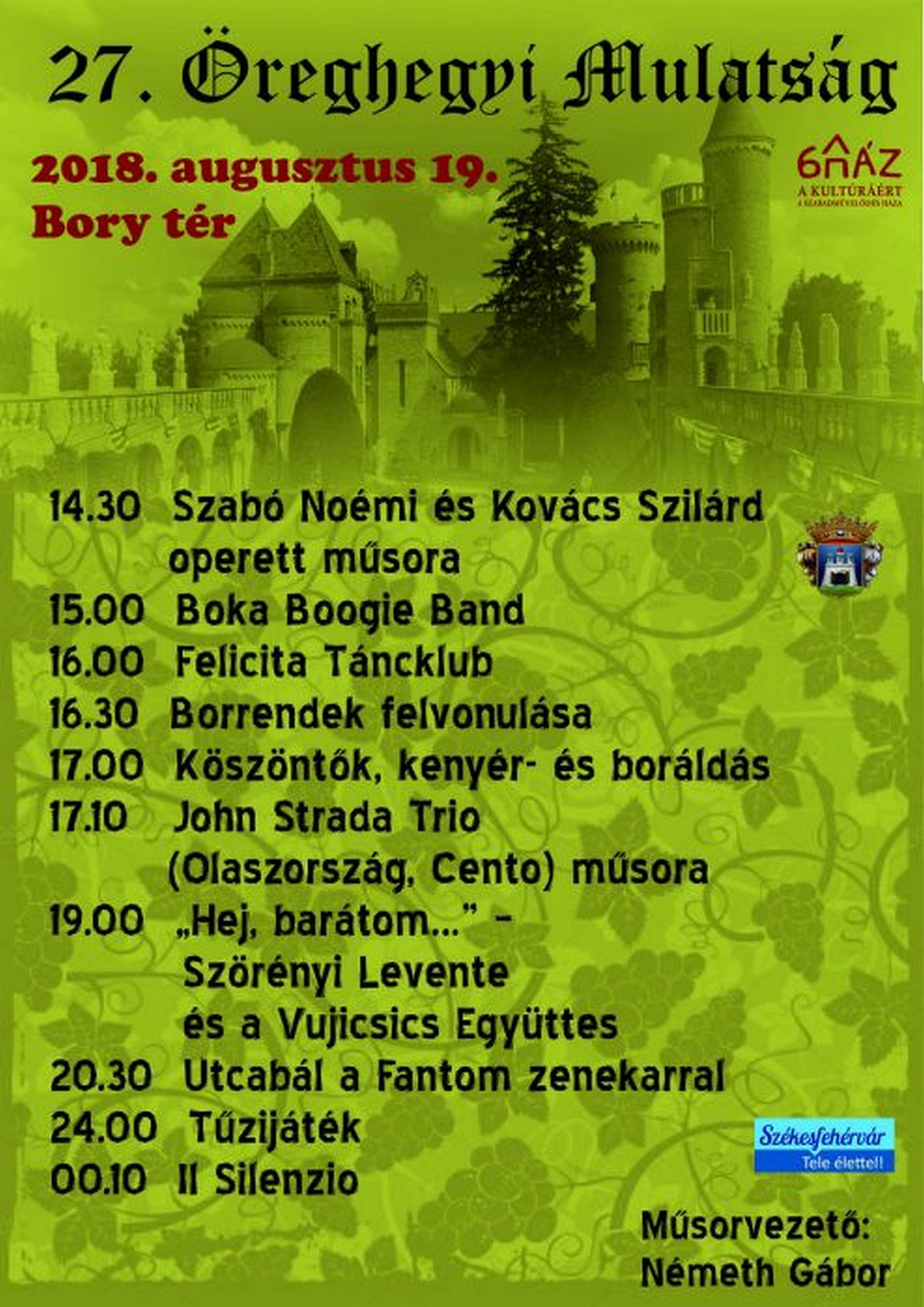 „Az Öreghegyi Mulatságon minden korosztály megtalálja a saját ízlésének megfelelő programot, mindenkit szeretettel várunk. Este hagyományos utcabál lesz a Fantom zenekarral, a tűzijáték után szokás szerint éjfélkor, az Il Silentio hangjaival zárul a nap. Igyekszünk megkönnyíteni a hazajutást; a rendezvényt követően a vágújhelyi úti megállóból autóbusz indul a belváros felé.” - emelte ki Östör Annamária, önkormányzati képviselő.