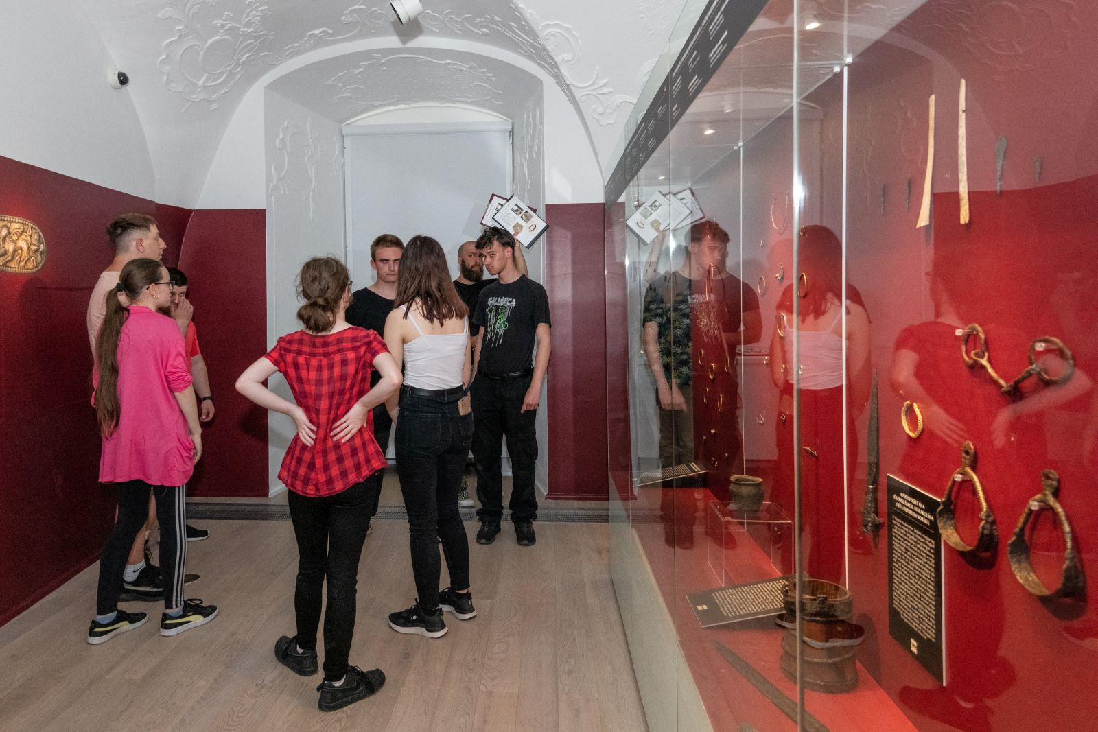 A Székesfehérvári Diáktanács általános iskolás tagjait és a diákönkormányzatok munkáját támogató pedagógusokat Haraszti Zsigmond múzeumpedagógus vezette végig a tárlaton