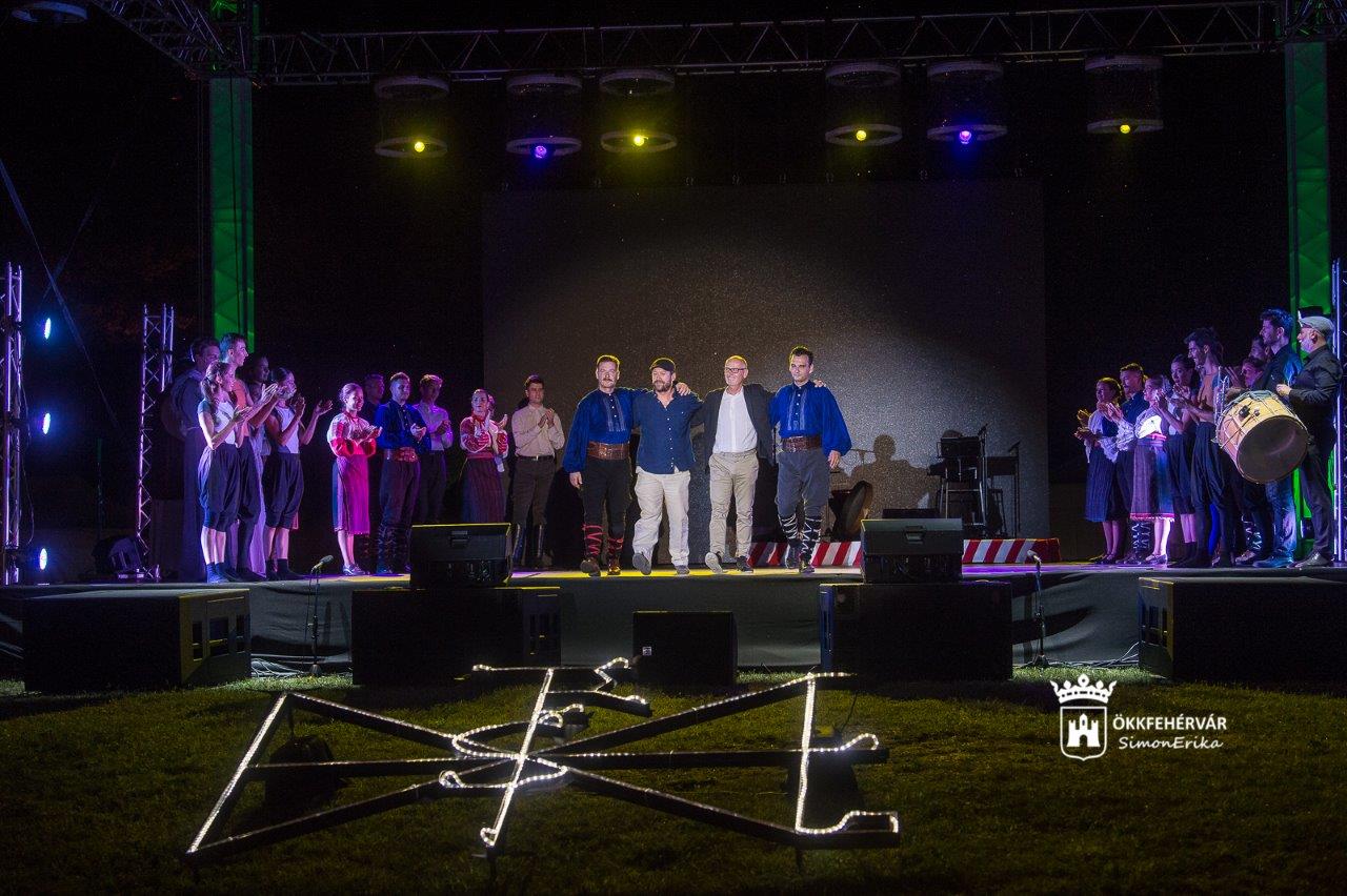 A fantasztikus történelmi játék közreműködői megérdemlik, hogy ideírjuk a nevüket: az előadás színészei Balogh Mihály, Szabó Miklós és Pál-Nagy Botond, zenészei Hámori János és Ölvedi Gábor, énekesei Eszes Nina, Farkas Eszter és Szabó Dániel, artistái a Golyó produkcióból Ratkóczy Lilla, a handstand produkcióból Heizer Dominika és Grandpierre Gabriel, valamint a BIAK Circuschool cirkuszművészei voltak. Az ünnepi műsorban közreműködtek a Székesfehérvári Balett Színház és az Alba Regia Táncegyüttes táncosai is, a koreográfusok Egerházi Attila és Majoros Róbert, a zeneszerző Szirtes Edina Mókus, a zenei vezető pedig Cserta Balázs volt. Hangmérnökként Kovács Tamás, fővilágosítóként pedig Tóth András működött közre.