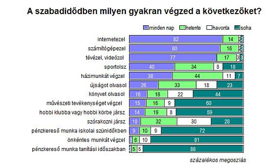 A 7., 8., 9. és 10. osztályosok közül több, mint 4500-an töltöttek ki egy on-line kérdőívet, melynek teljes kutatási beszámolója egy hét múlva lesz elérhető. Ebből kiderül többek között az is, hogy a szabadidős programok megváltoztak: a televízió és a számítógép, internet előtt töltött idő az elsődleges tevékenység, azonban a más városokhoz képest van annak foganatja, ami a sport területén történik a városban, mert a negyedik helyre a sportolás sorolódott. A fiatalok majd fele nyilatkozott úgy, hogy sportol valamit szervezett formában.
