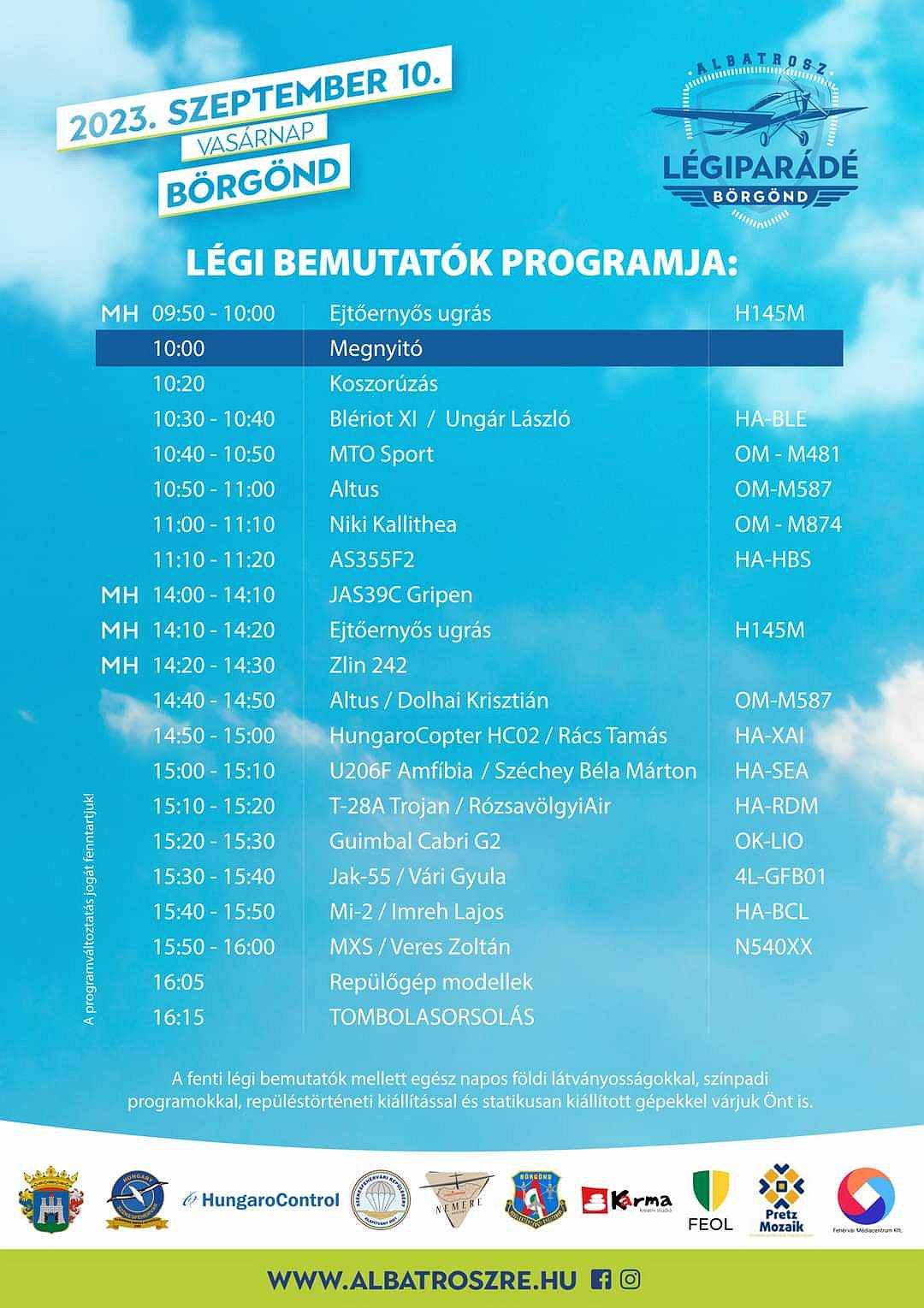 Az Albatrosz Repülő Egyesület elkötelezettségének, töretlen lelkesedésének köszönhetően immár 28. alkalommal találkoznak szeptember második vasárnapján a repülés, a repülőgépek szerelemesei Börgöndön, ahol évről évre valami újdonsággal várják az érkezőket. Székesfehérvár Önkormányzata a lehetőségekhez mérten minden évben támogatja a rendezvényt, hiszen a fehérvári repülés több mint 100 éves története, és a reptér jövőjét jelentő fejlesztések, tervek megvalósítása mindannyiunk feladata, érdeke, hangsúlyozta Viza Attila közbiztonsági tanácsnok.