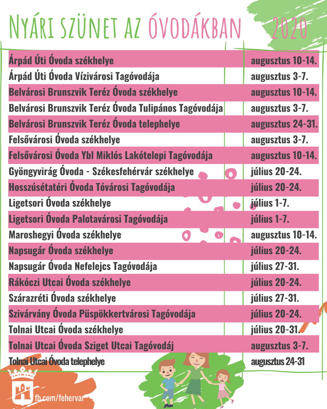 Határozat az óvodák nyitvatartásáról: https://www.szekesfehervar.hu/