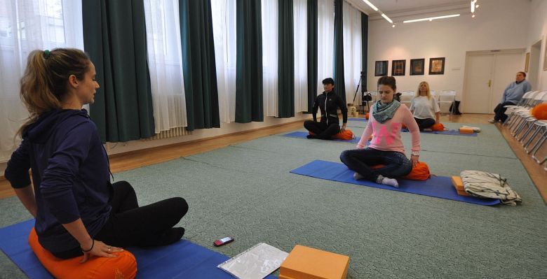 Az Öreghegyi Egészségnapon a városrész képviselője Östör Annamária is ott volt, aki a Halesz ligeti Szeretetfutás előtt jógán vett részt a közösségi házban.
