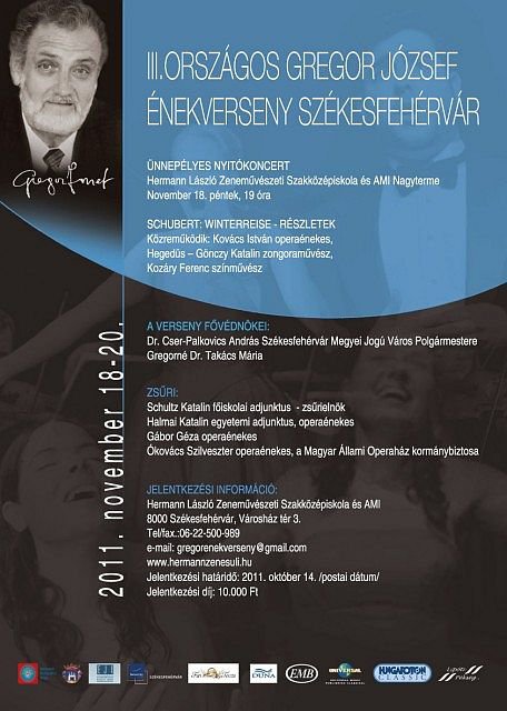 November 18-ától, péntektől 20-ig, vasárnapig tart az idei énekverseny, ami végig nyilvános, szeretettel várják az érdeklődőket mindhárom napon. A nyitóhangversenyt pénteken 19 órától tartják a zeneiskola hangversenytermében. Itt emlékeznek meg Gregor Józsefről is, halálának 5. évfordulóján. A koncerten "Franz Schubert: Winterreise" című dalciklusából hallhat részleteket a közönség, Kovács István operaénekes és Hegedűs-Gönczy Katalin zongoraművész előadásában, Kozáry Ferenc színművész közreműködésével.