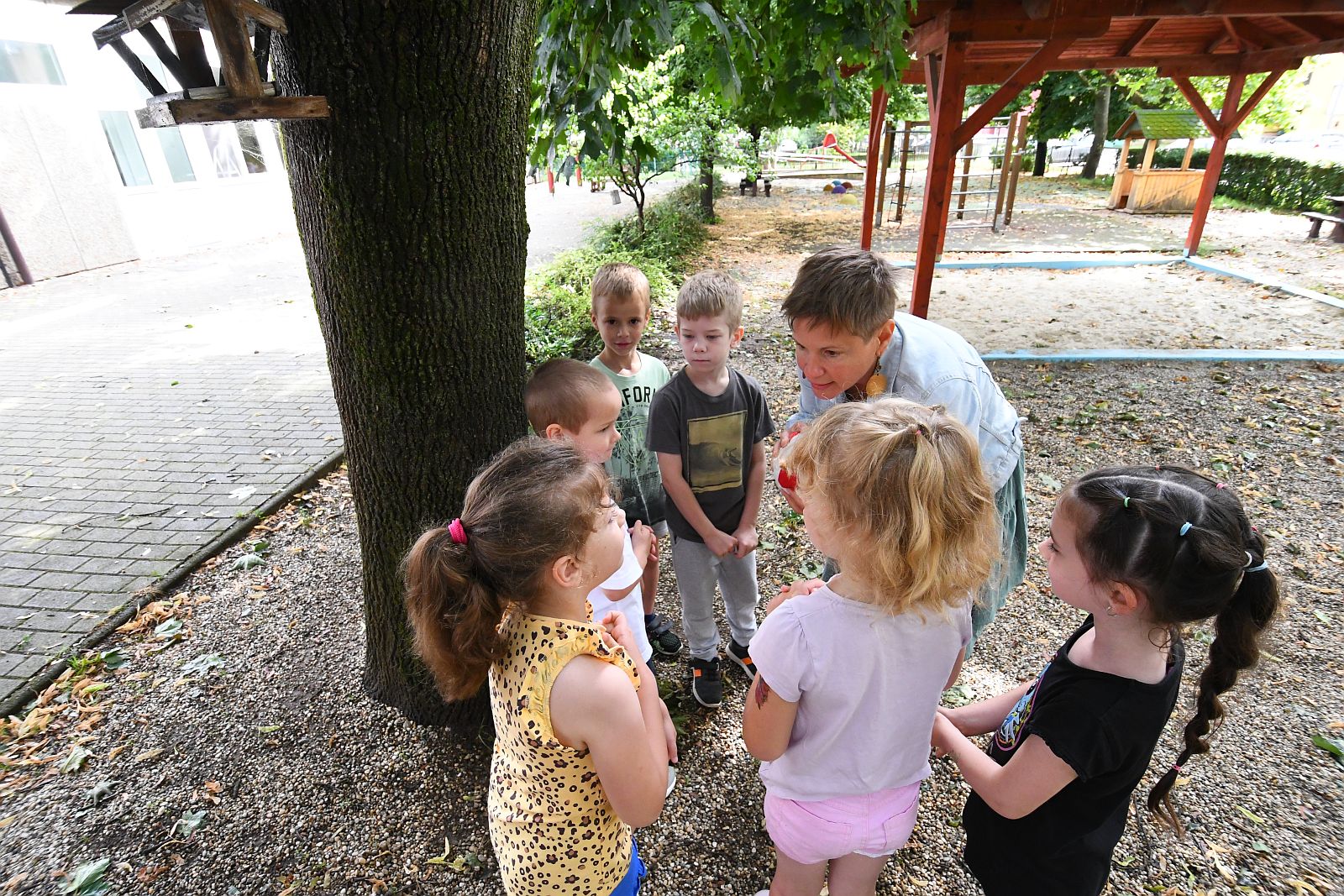 Oláhné Wágner Erika, a Tolnai Utcai Óvoda vezetője elmondta, a gyerekek szívesen játszanak az udvaron, figyelik meg a természetet és gondozzák a kiskeretet, amelyben idén a fűszernövények mellett eper és répa is termett.