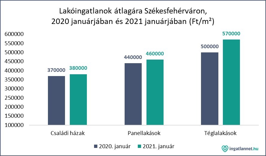 A székesfehérvári lakóingatlanok 2021. januári átlagos négyzetméter árai mondhatni megegyeznek a 2020. januári átlagárakkal. Persze kivételek mindig vannak, ezúttal a téglalakások.